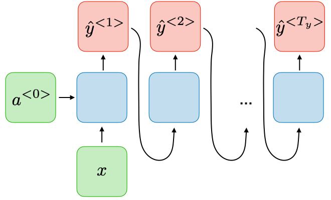 | One-to-many Tx=1, Ty>1 | ورودی واحد به خروجیهای متعدد: ![]() | تولید موسیقی از نت اولیه |