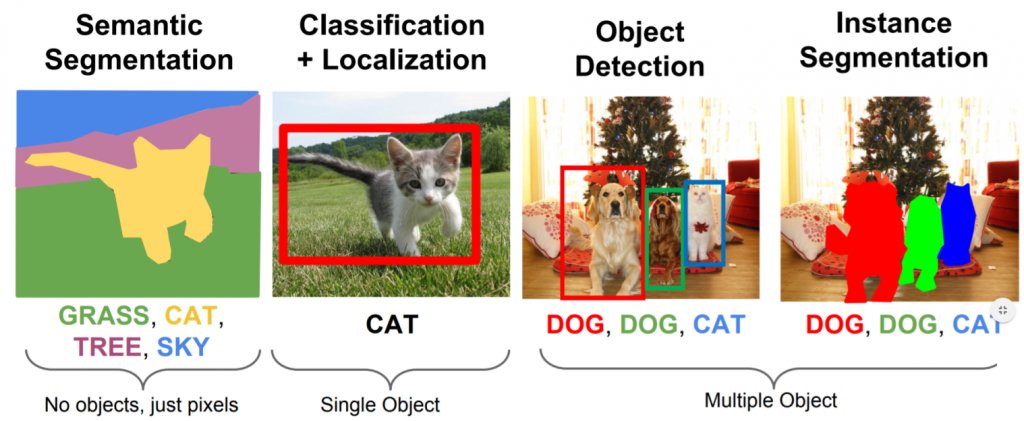 - بخشبندی معنایی (Semantic Segmentation) هر پیکسل را به یک کلاس معنایی (مانند “شخص” یا “ماشین”) اختصاص میدهد و بر درک محتوای صحنه تمرکز دارد.